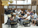 南法中5ヶ寺(立栄寺・長照寺・安楽寺・元浄寺・西立寺・順教寺)主催のもとに、9月14日(土)午後7:00~21:40順教寺において、開催された。長照寺ご住職の勤行に始まり、順教寺副住職さんの法話がありました。その内容は、仏檀は江戸時代末期に広く普及し、金仏檀は本願寺の縮小を模している。お仏檀に向かう心構えについても、定まった形はないと言及されながらも、亡くなられた人との接点の機能、先祖を敬う・苦しみ・楽しみの報告や語らい等多様性がある。